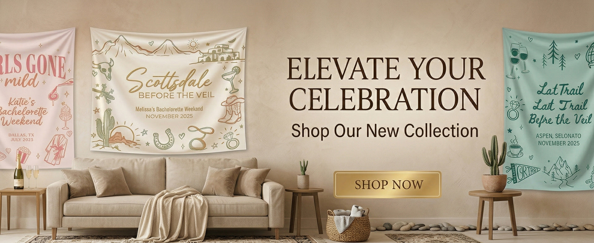 Scottsdale Bachelorette Party Banner, Desert Bachelorette Backdrop, Arizona Bach Welcome Sign, Personalized Bachelorette Tapestry